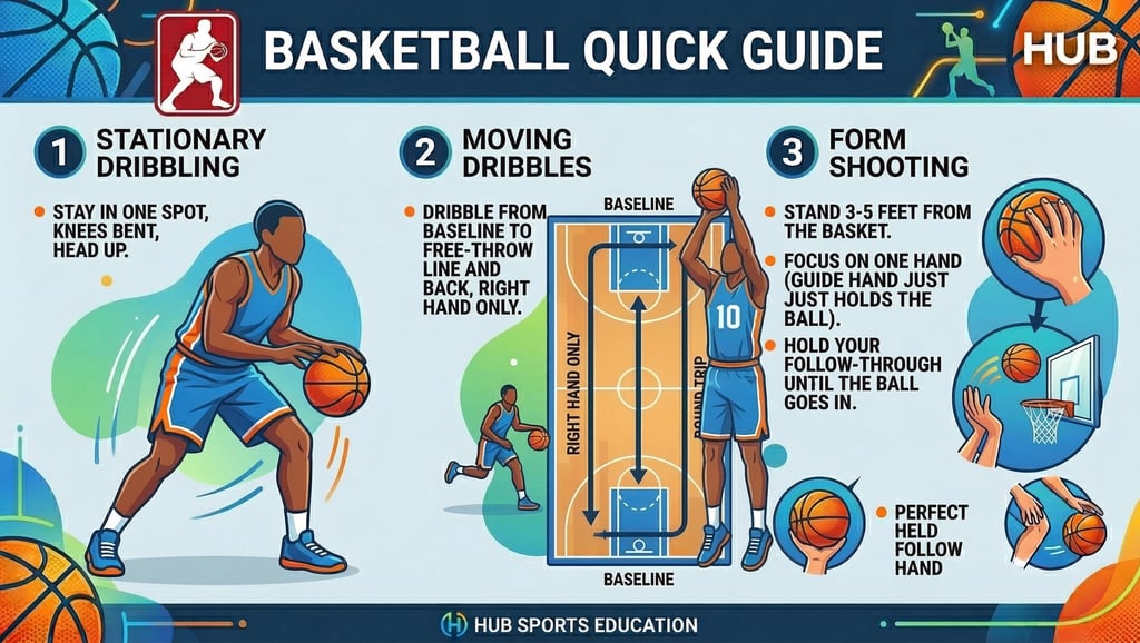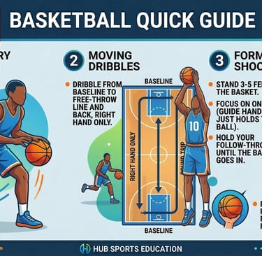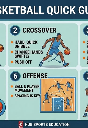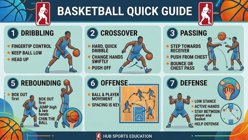 This page breaks down the basics of basketball using easy-to-understand infographics.